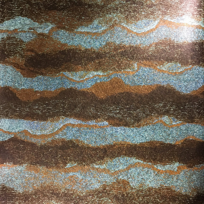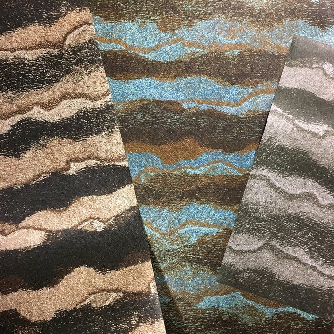 Our Bedrock design, from our Strata range inspired by geology. Colours of minerals and rocks. Printed onto a heavy weight fibrous substrate giving the paper a lustrous sheen.