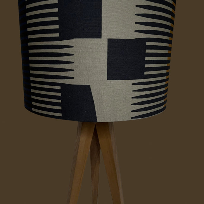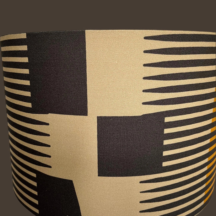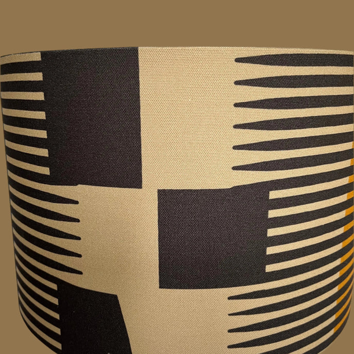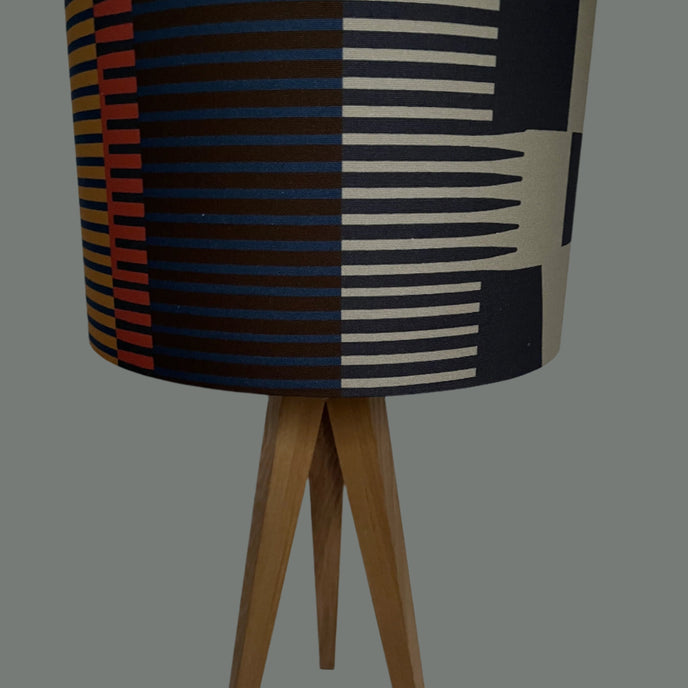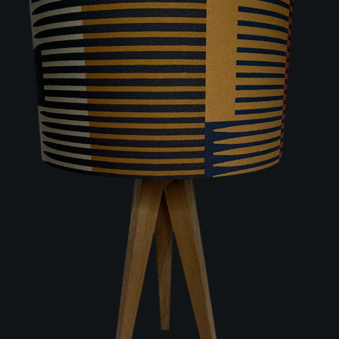 Combed stripe Lampshade - Navy + Ochre - 23 h x 35 d cm