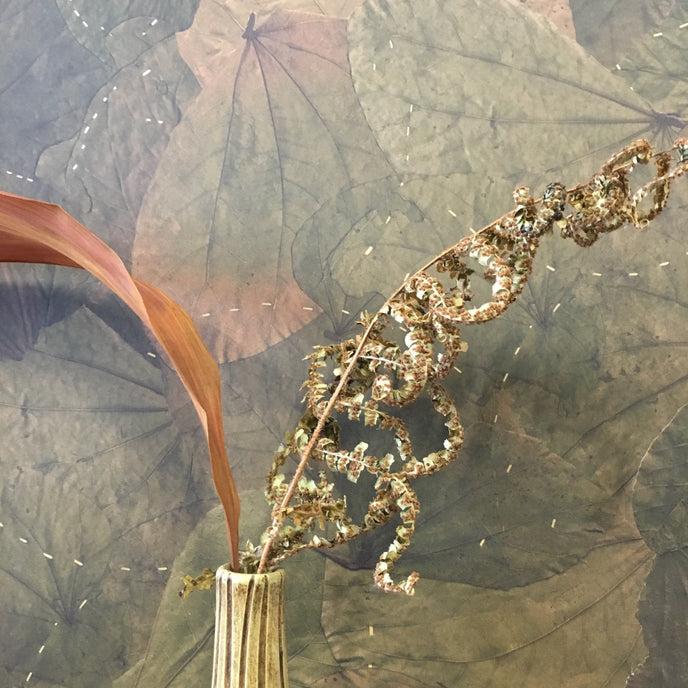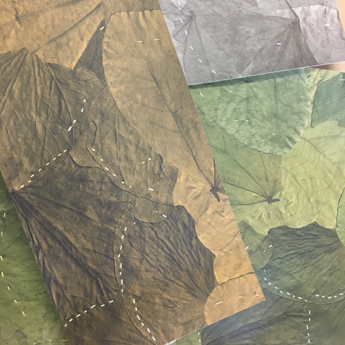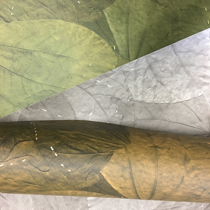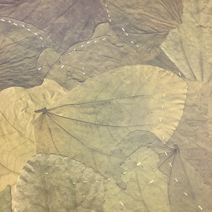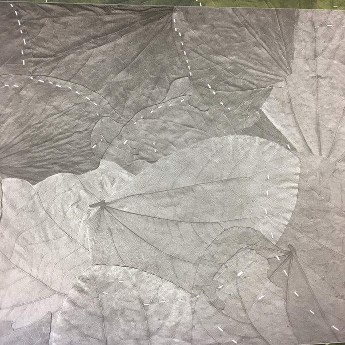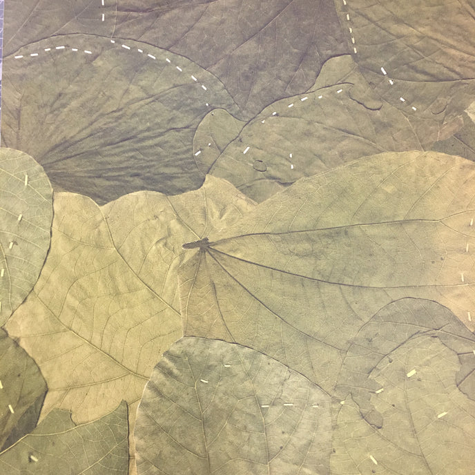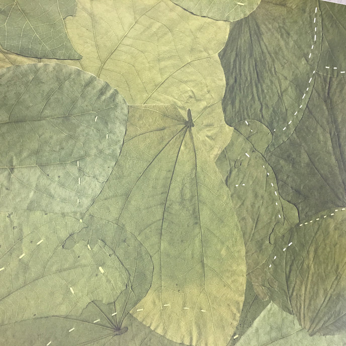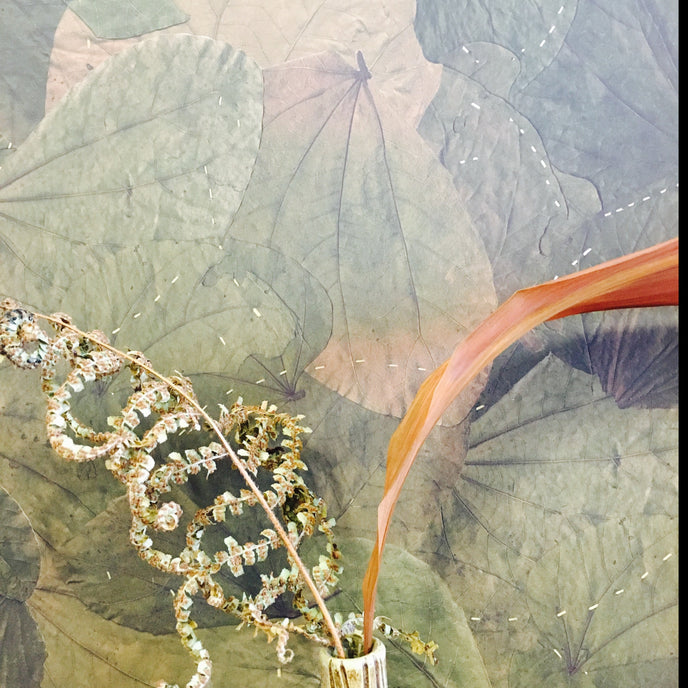Created in the studio, collected pressed leaves, stitched in layers and scanned revealing amazing detail. Bring the outside in with this gorgeous fresh design.