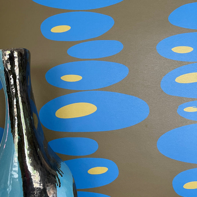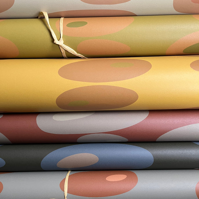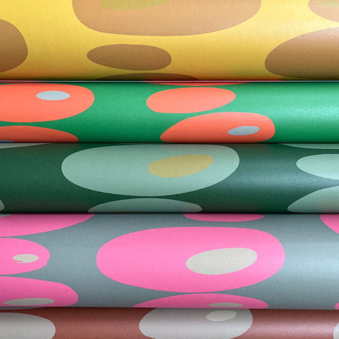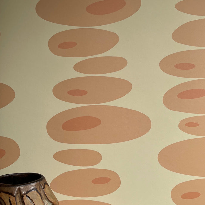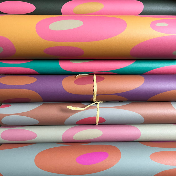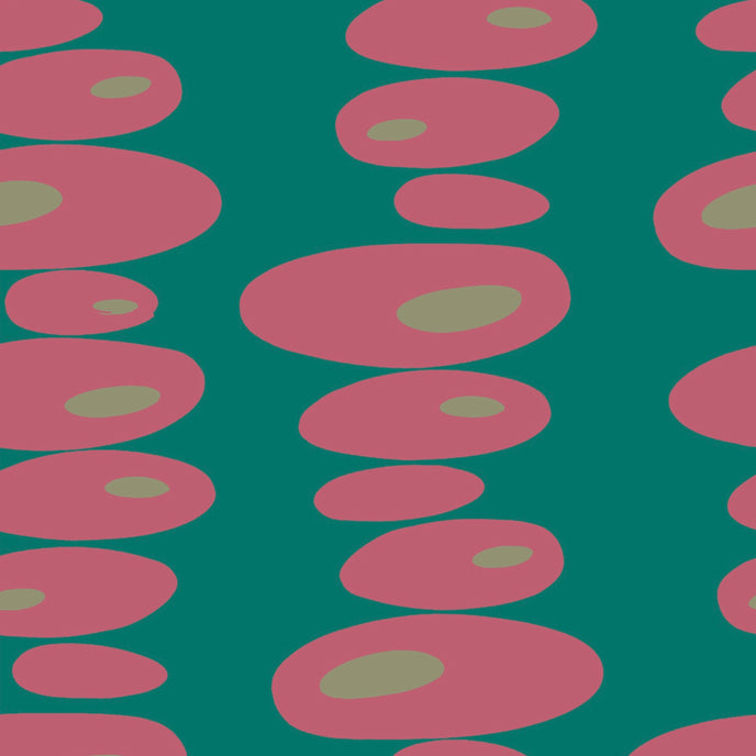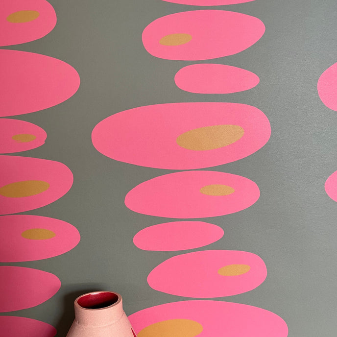 Pebbles Wallpaper - Simple oval shapes stacked to create a vertical stripe on the wall. Gorgeous vibrant, clashing colours to brighten any room.