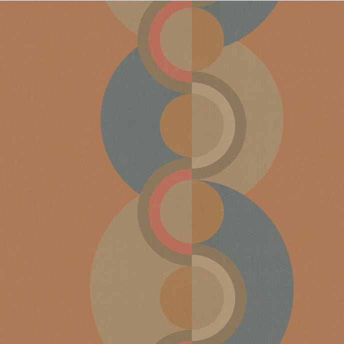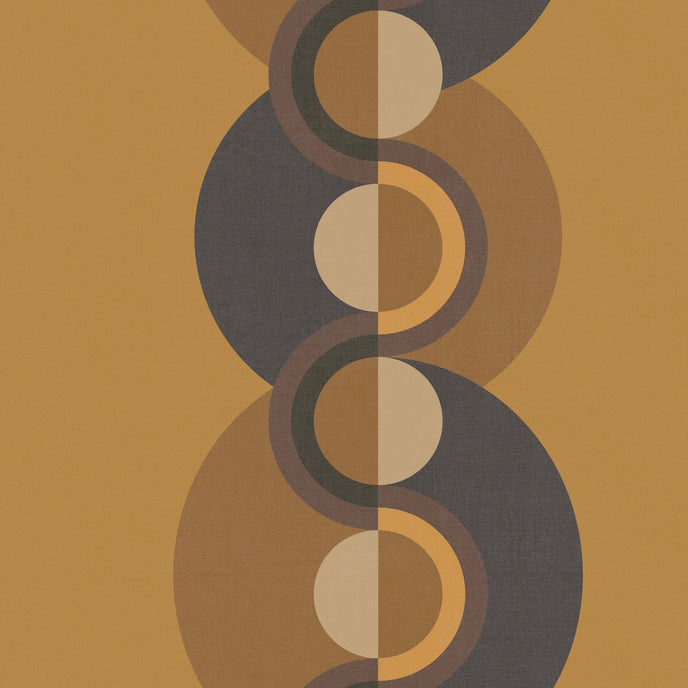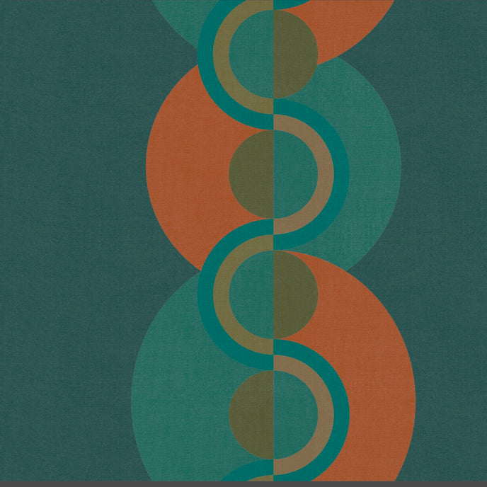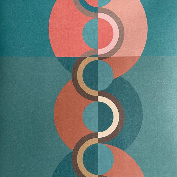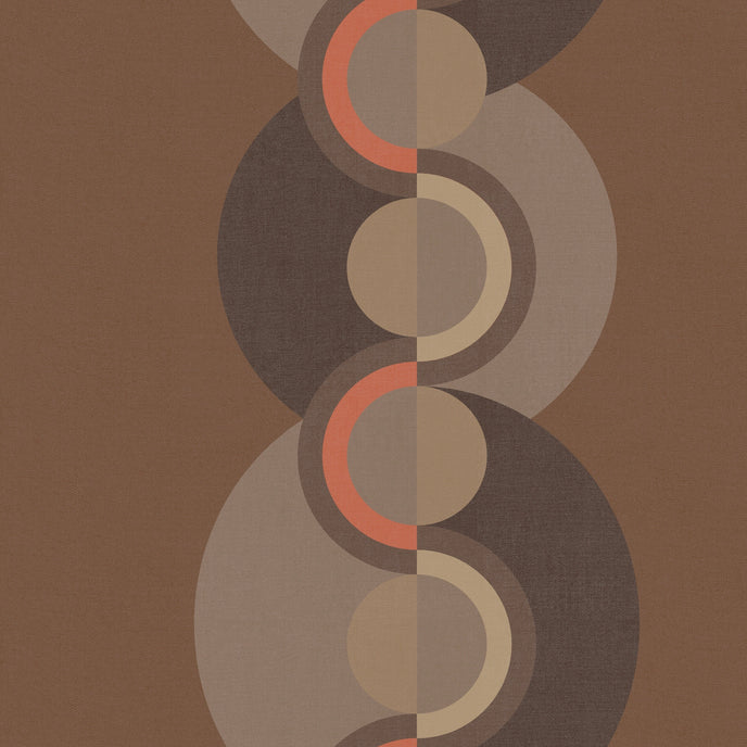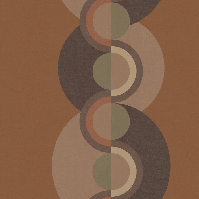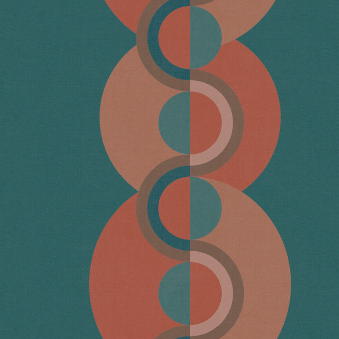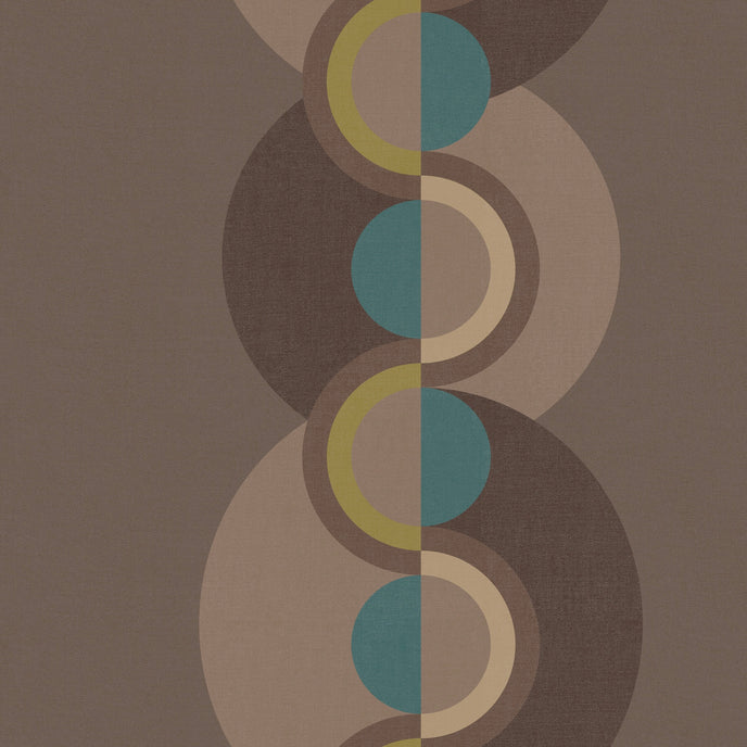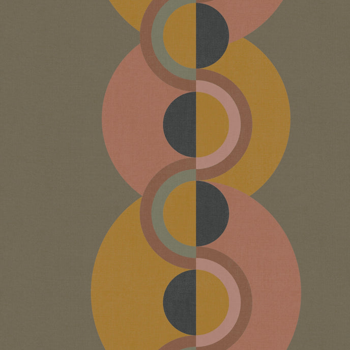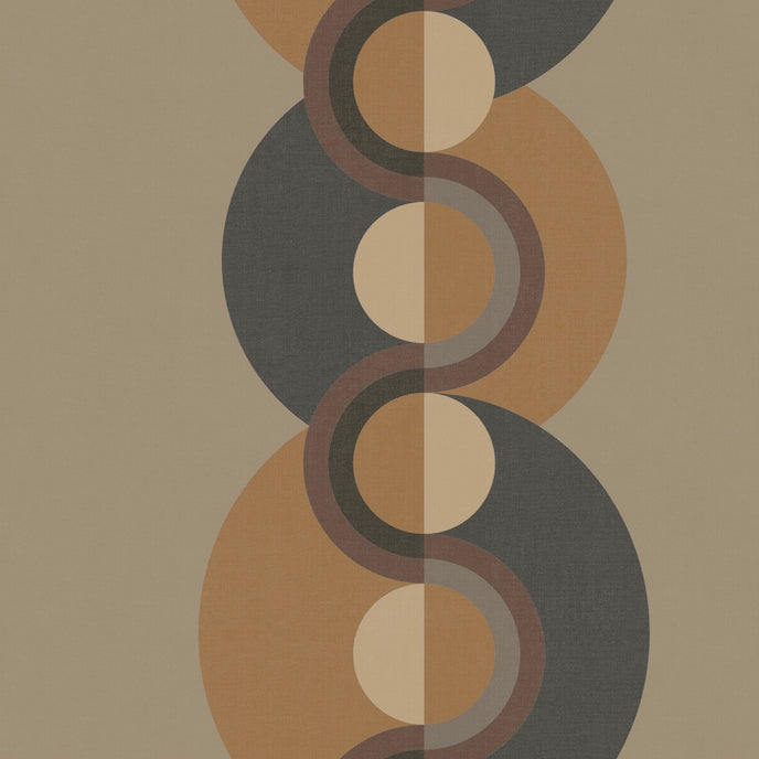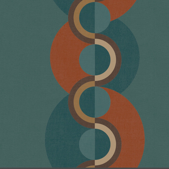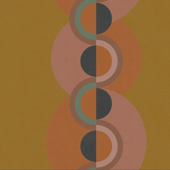 Retro Circle wallpaper an interlocking, entwined designed with a mid century essence. One stripe in each width, makes a statement wallpaper.