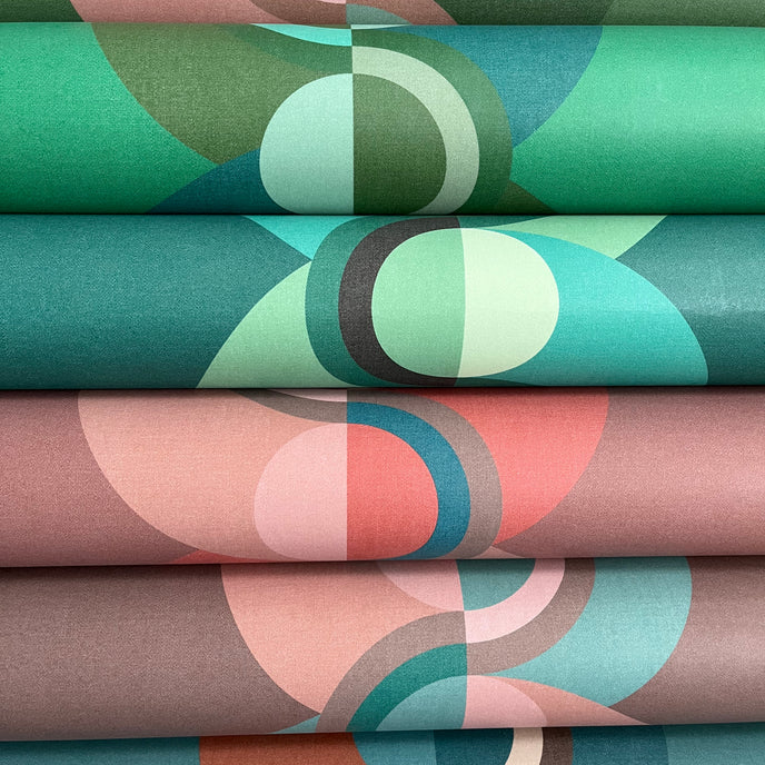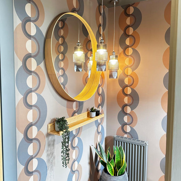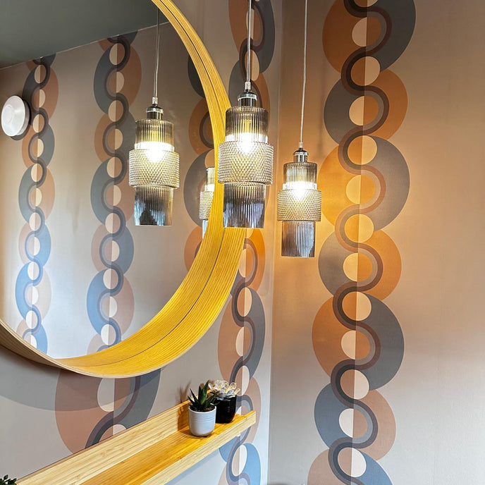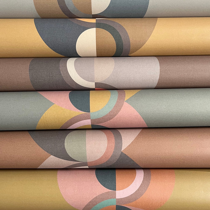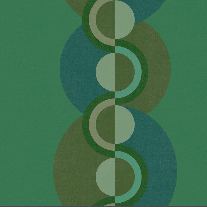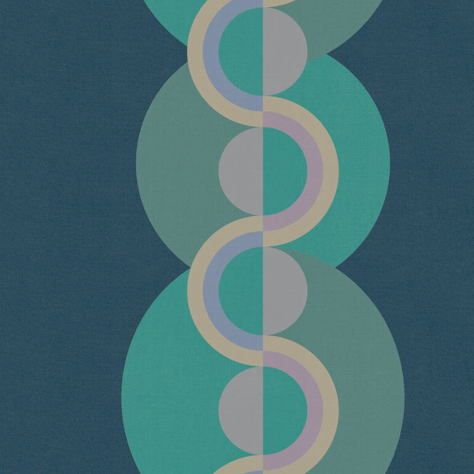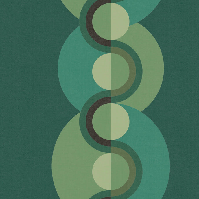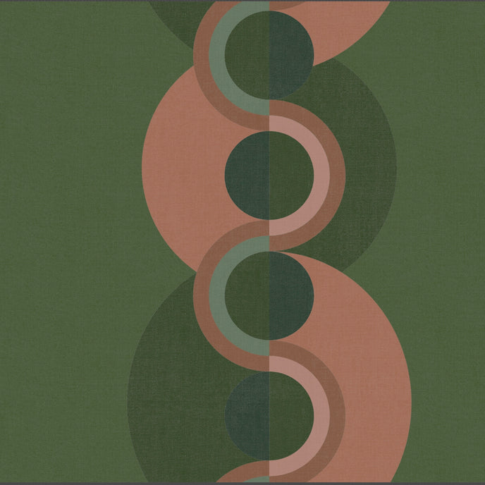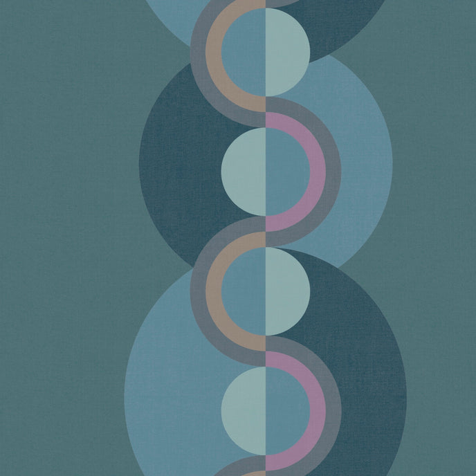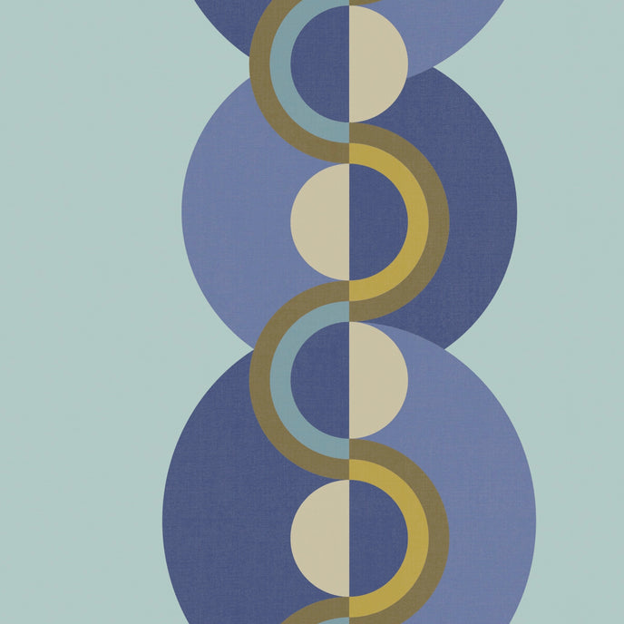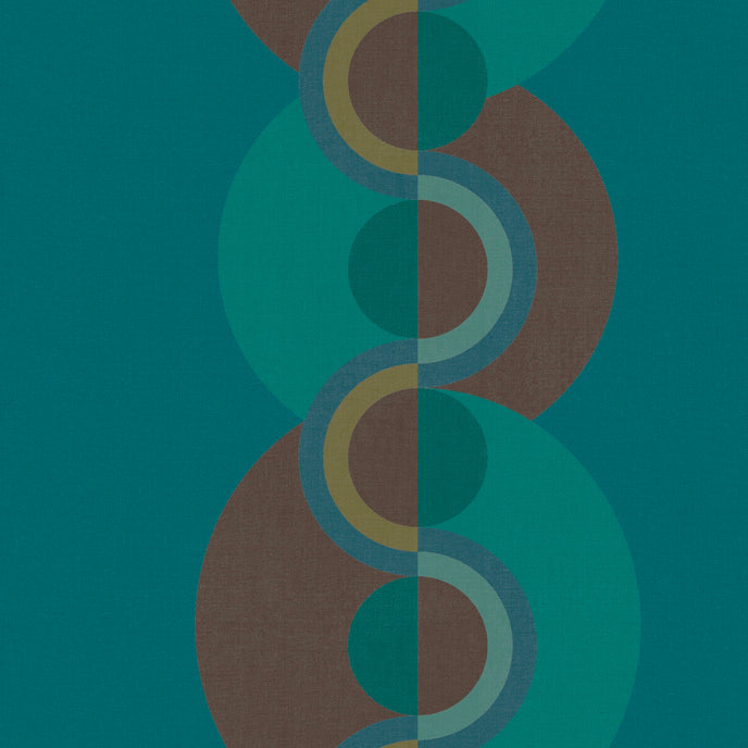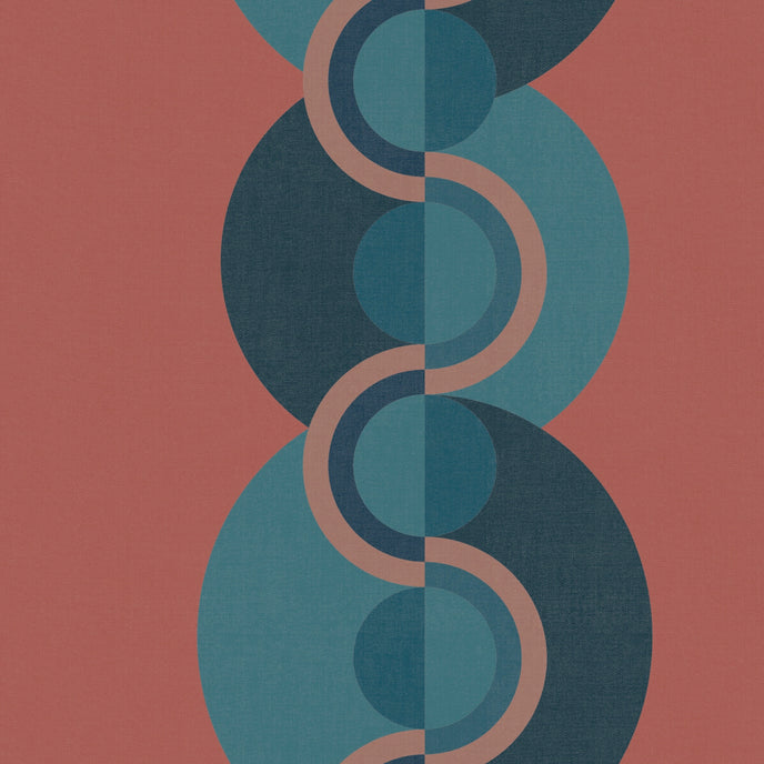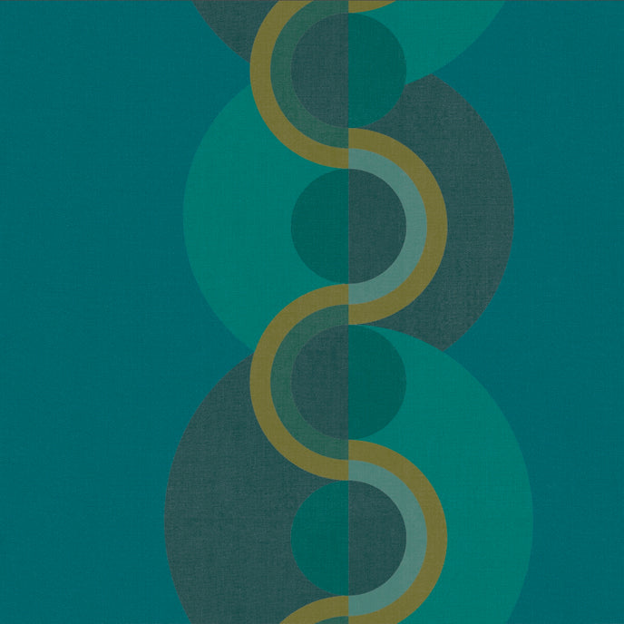 Retro Circle wallpaper an interlocking, entwined designed with a mid century essence. One stripe in each width, makes a statement wallpaper.