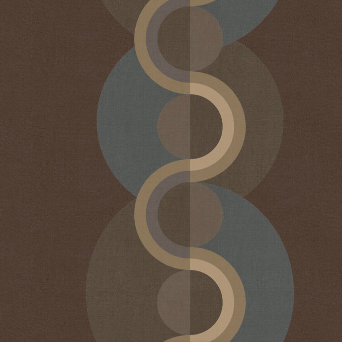 Retro Circle wallpaper an interlocking, entwined designed with a mid century essence. One stripe in each width, makes a statement wallpaper.