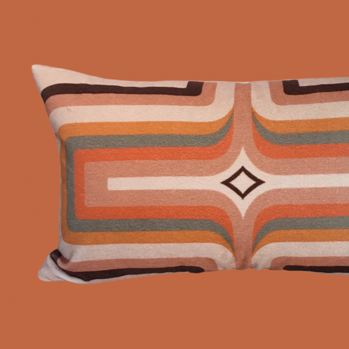 Retro Geometric Velvet Cushion - Mink