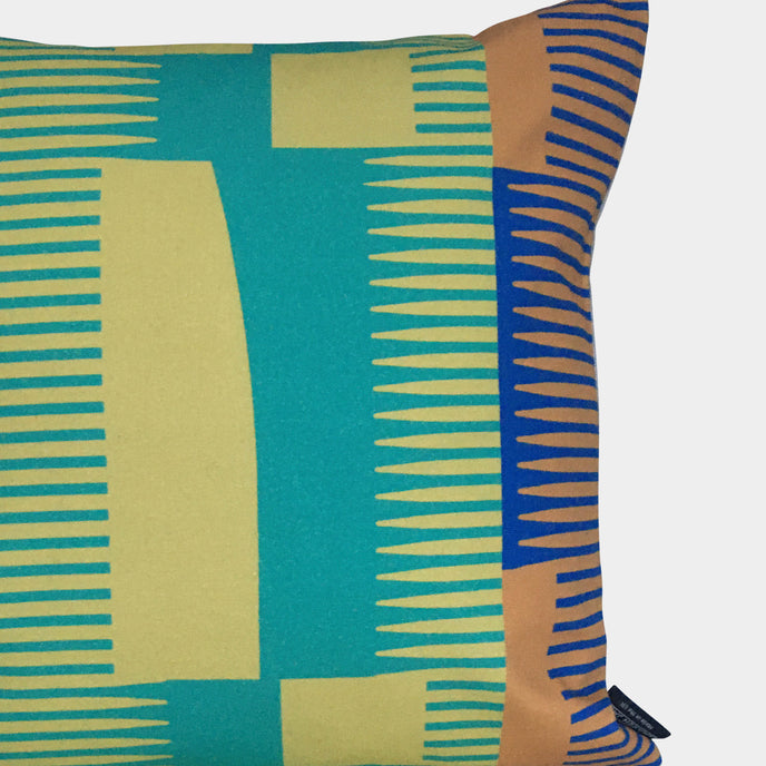 Square Combed Stripe Cushion - Yellow, Jade + Black