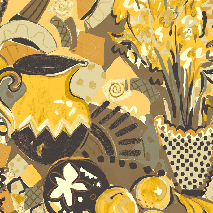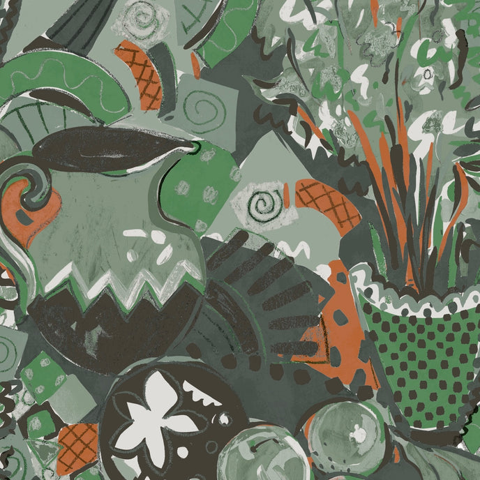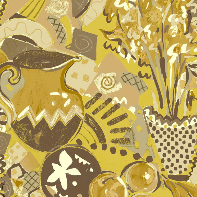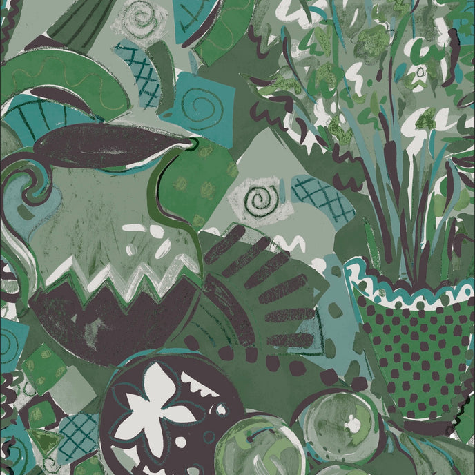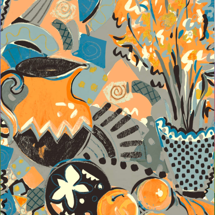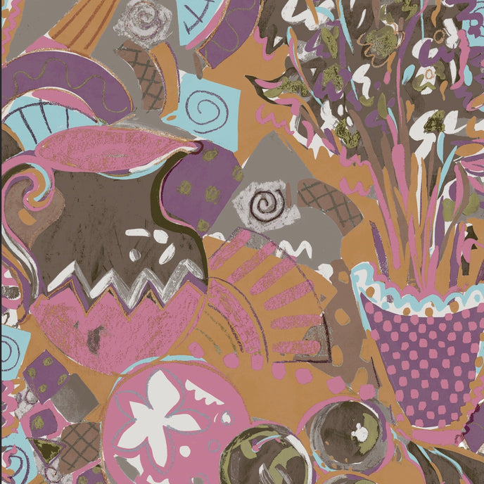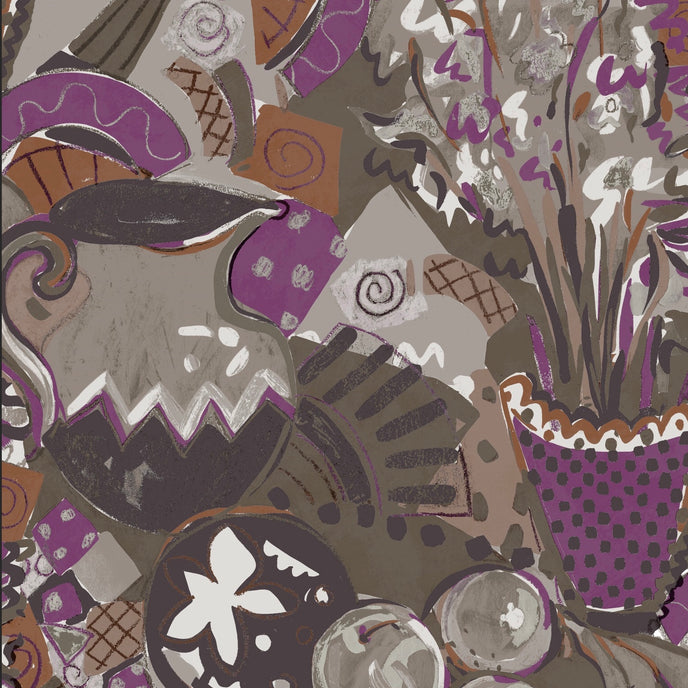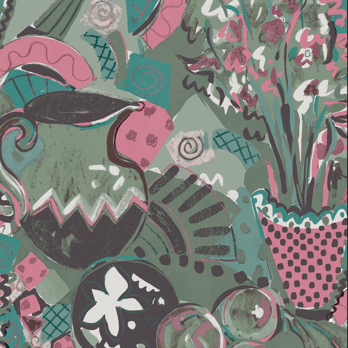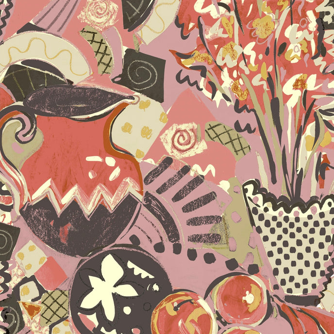 Still Life Wallpaper - Designed in our studio, the wallpaper is based on a series of paintings and drawings. A painterly expressive style in tonal palettes of colours with depth of colour and imagery.