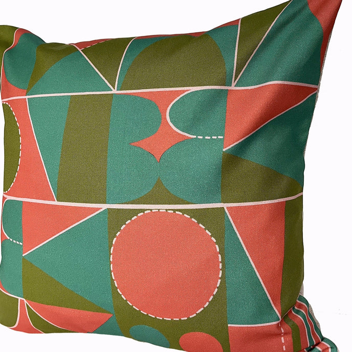 Printed heavycotton front and neutral linen plain back. filled feather inner.Zipped fastening.