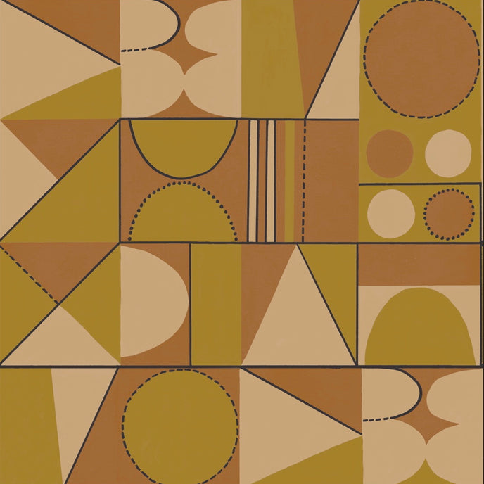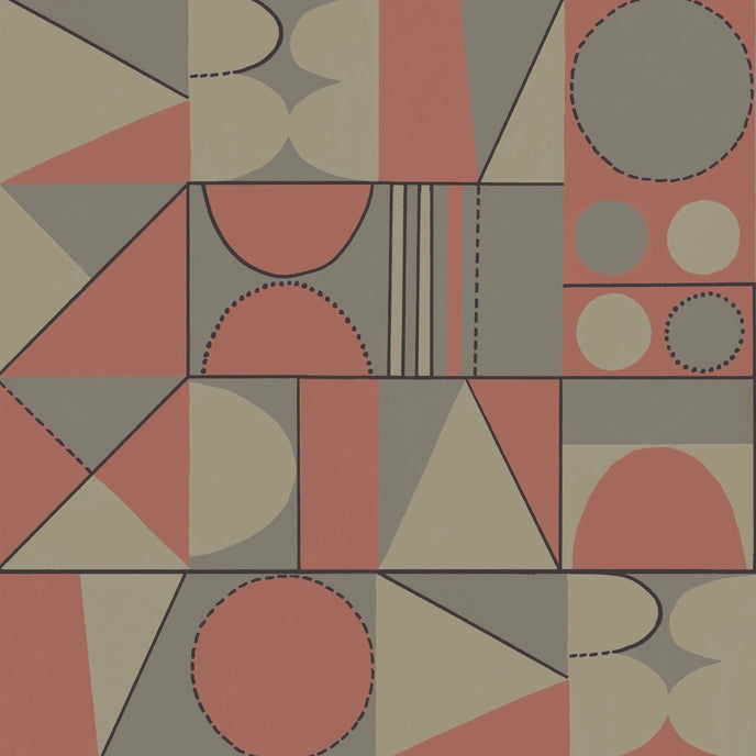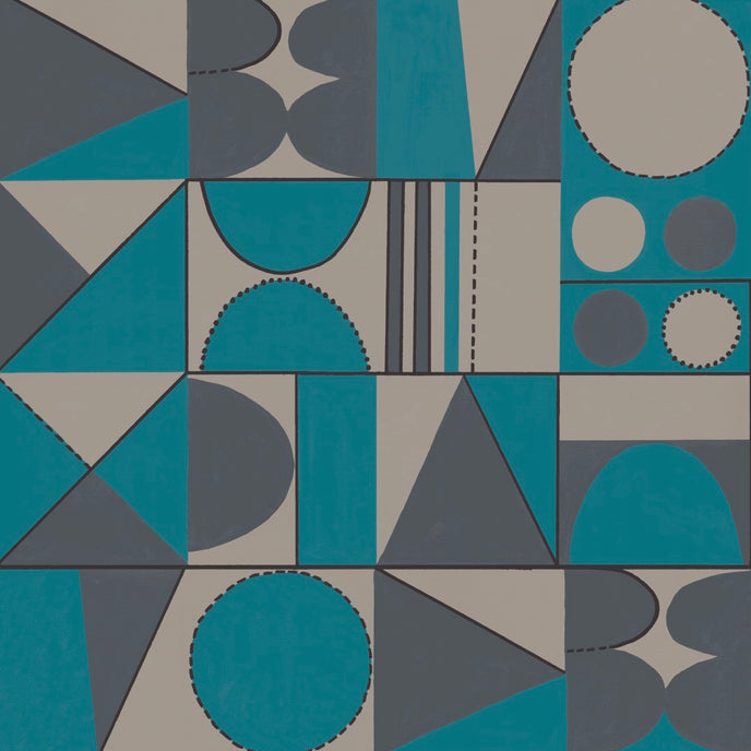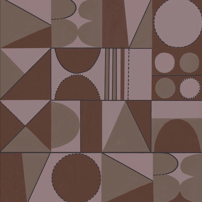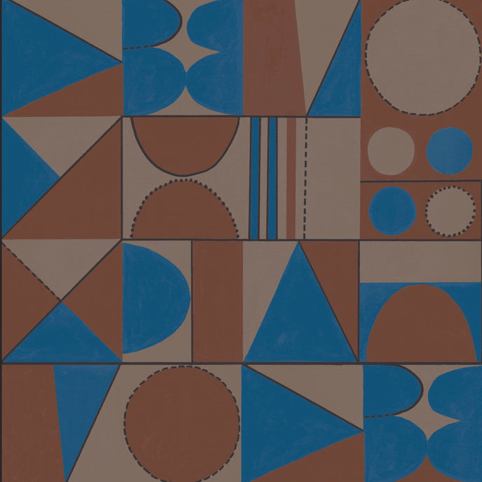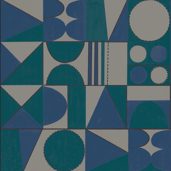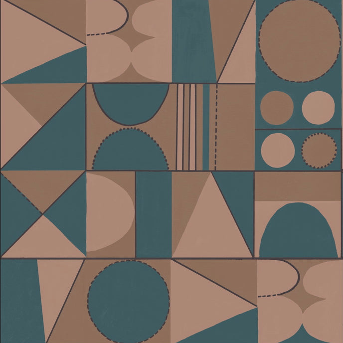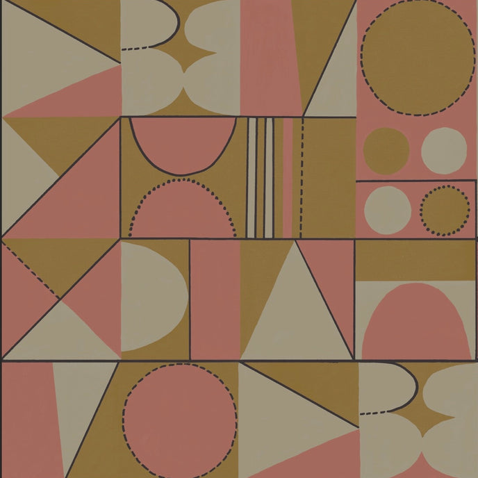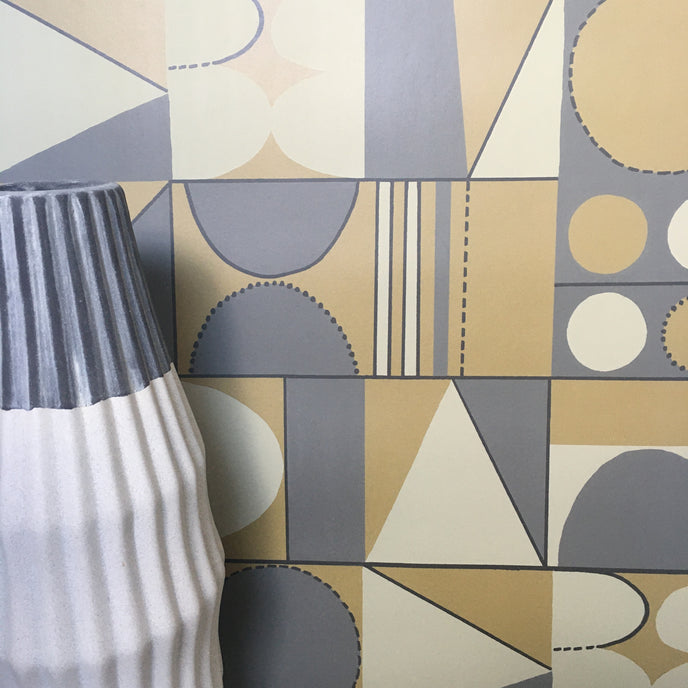 Soft geometric shapes divided with dots, dashes and lines. A defined tile effect of interlocking shapes. A generic design can be used in any room .
