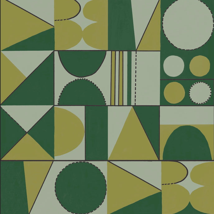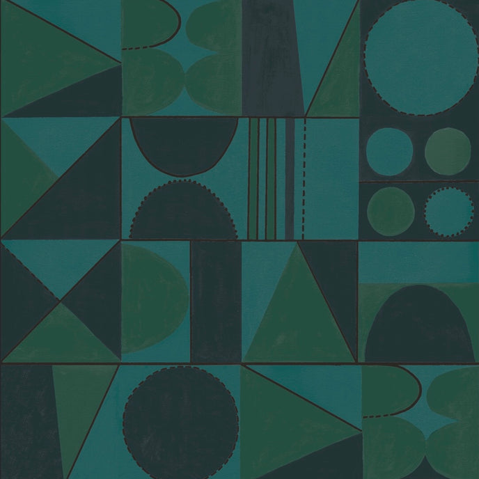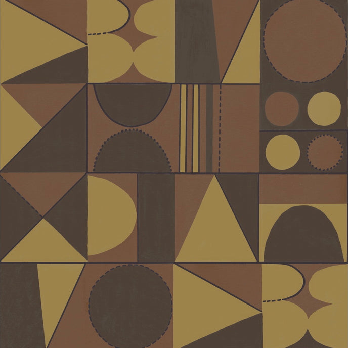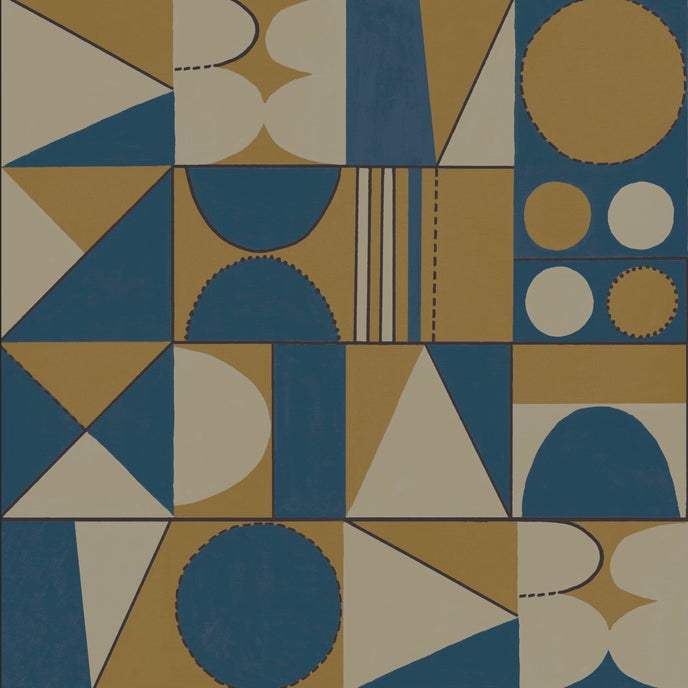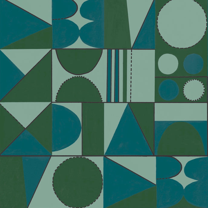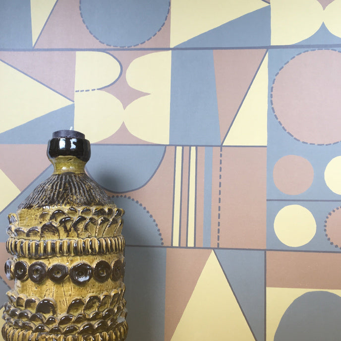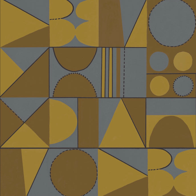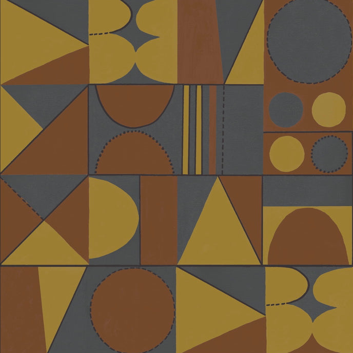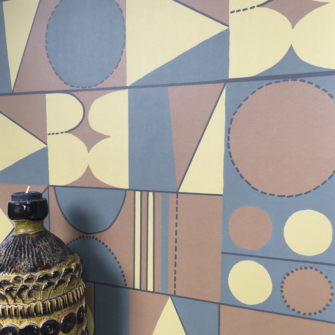 Soft geometric shapes divided with dots, dashes and lines. A defined tile effect of interlocking shapes. A generic design can be used in any room .