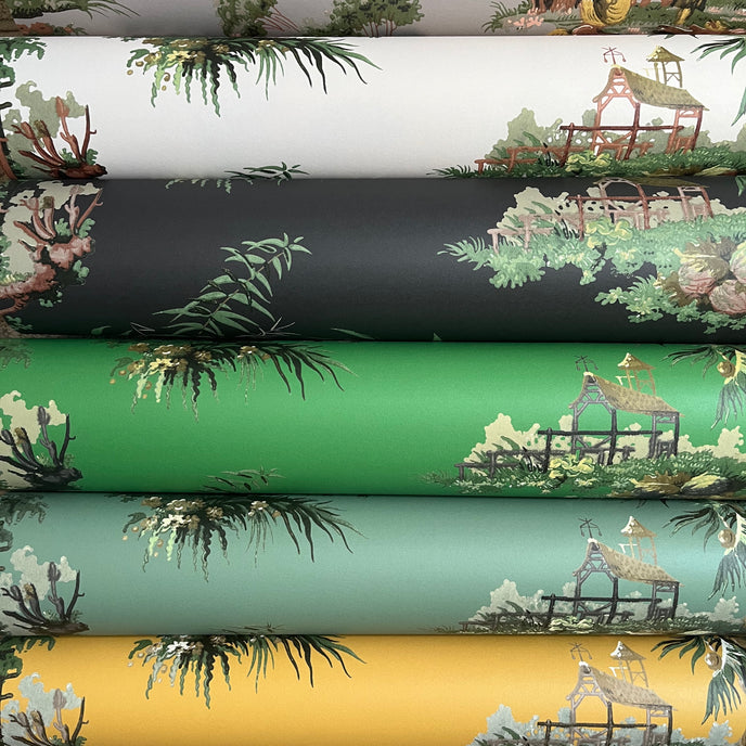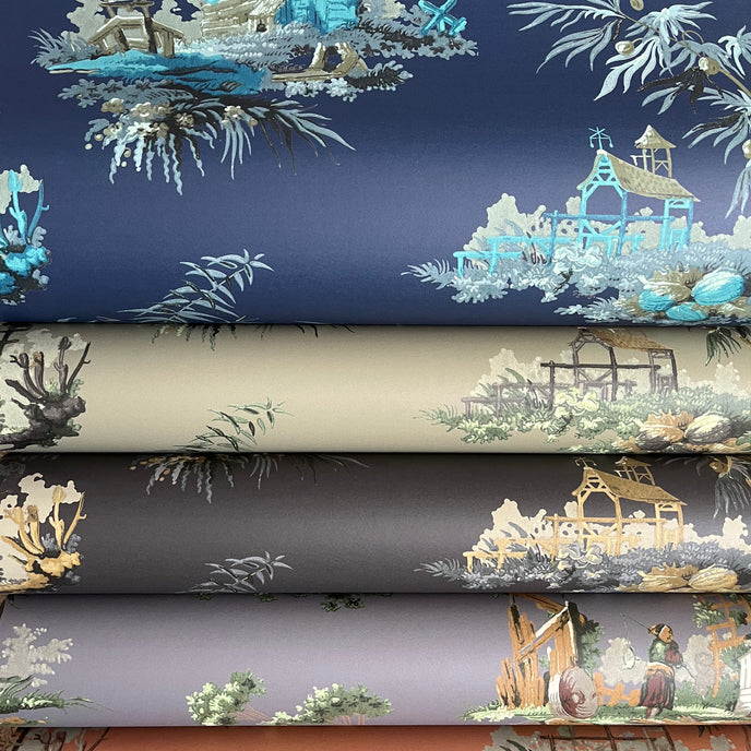 Vintage oriental wallpaper.oriental scenes with up to date colourings