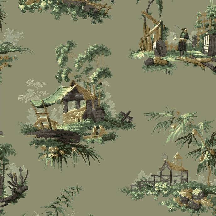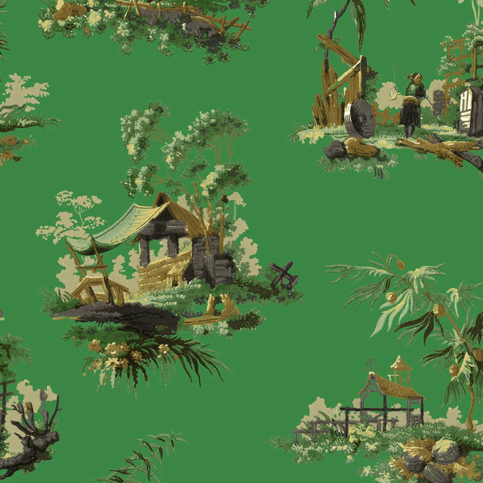 Vintage Oriental Wallpaper - Bright green