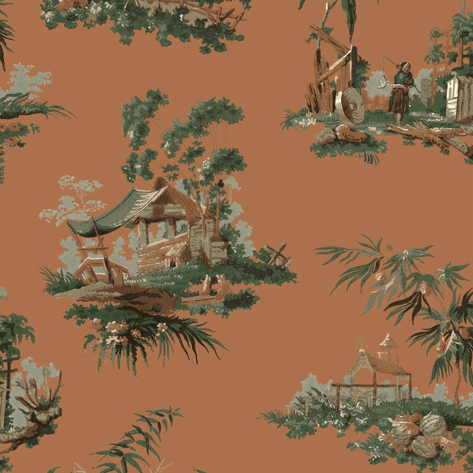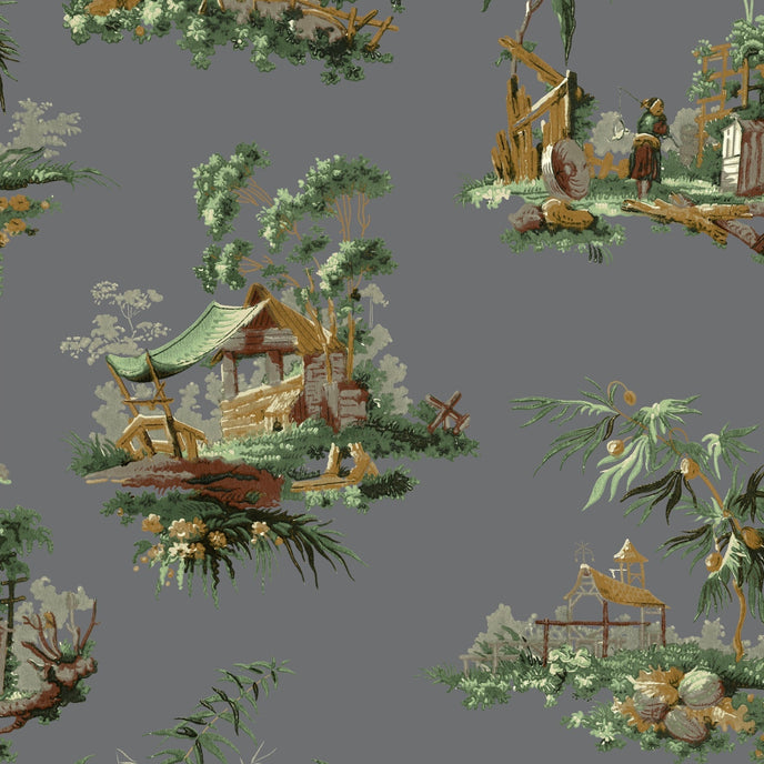 Vintage oriental wallpaper.oriental scenes with up to date colourings