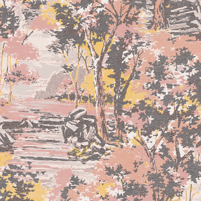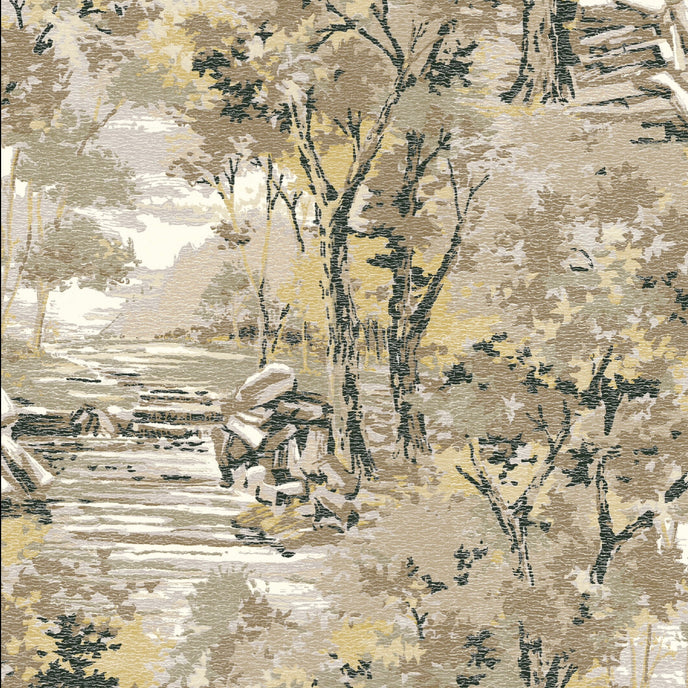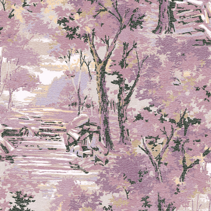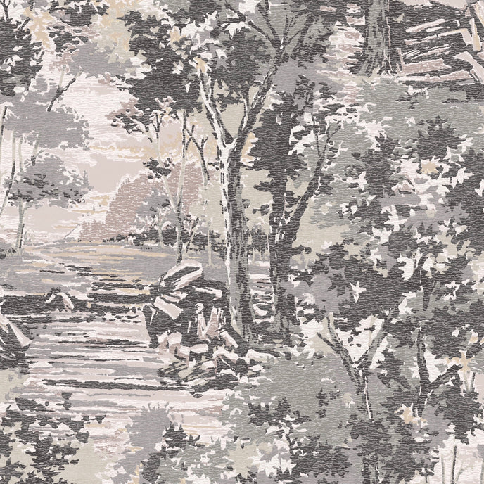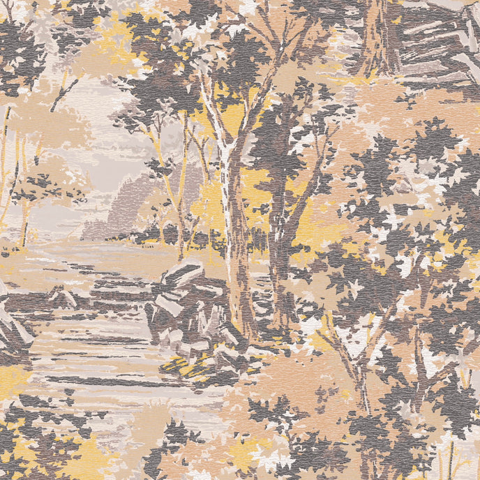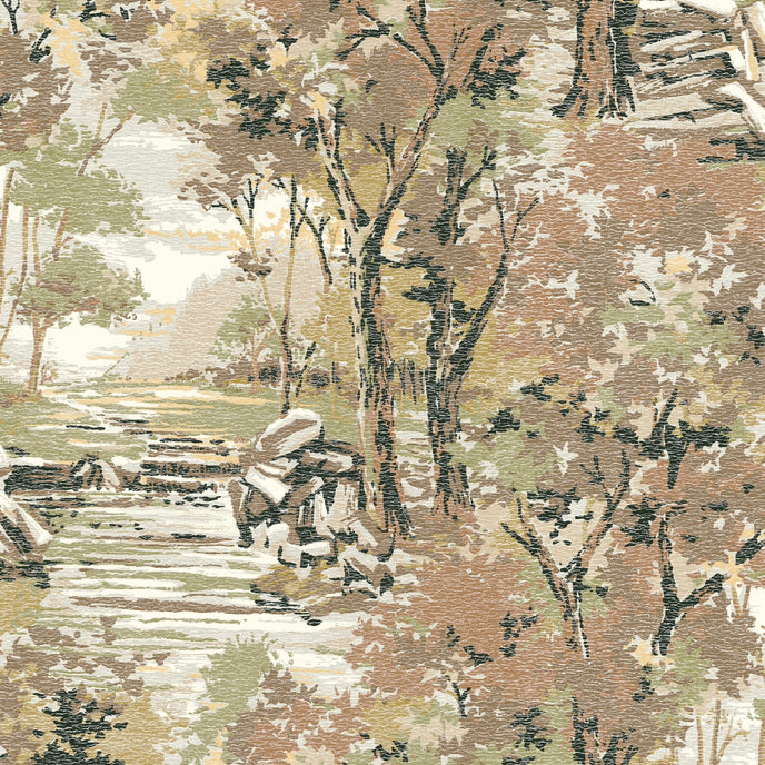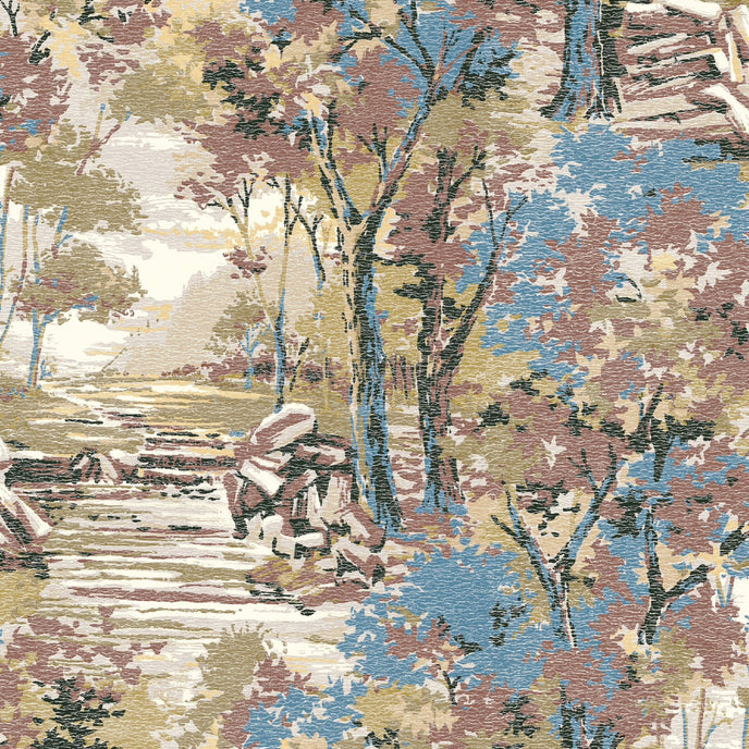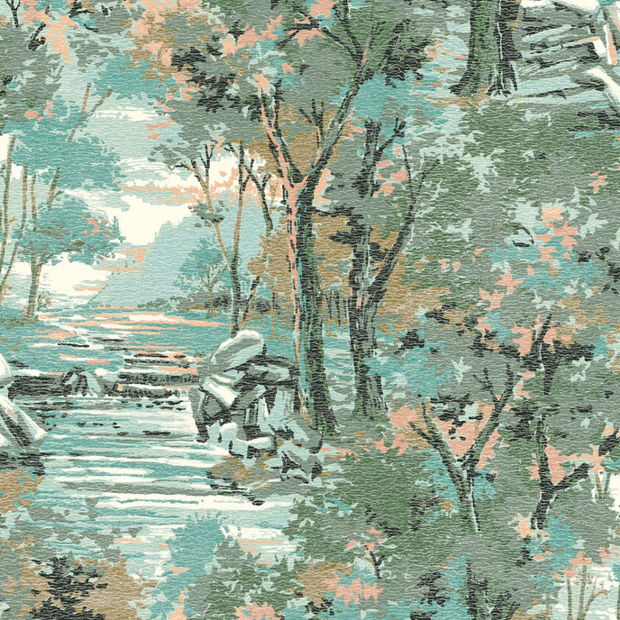 Forest Glade Wallpaper based on a Vintage Wallpaper design, featuring plants and trees with a strong horizontal texture. Available in several contemporary colour ways