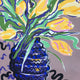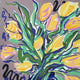 Gouache on paper. Yellow tulips on a taupe ground.